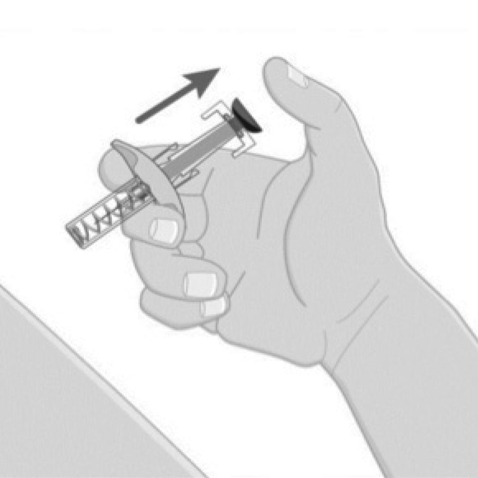 While holding the body of the syringe, remove the needle cover as shown and discard