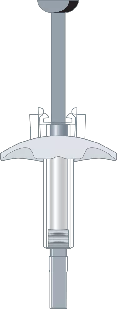 After the blue plunger is released, the safety lock will draw the needle inside the guard needle